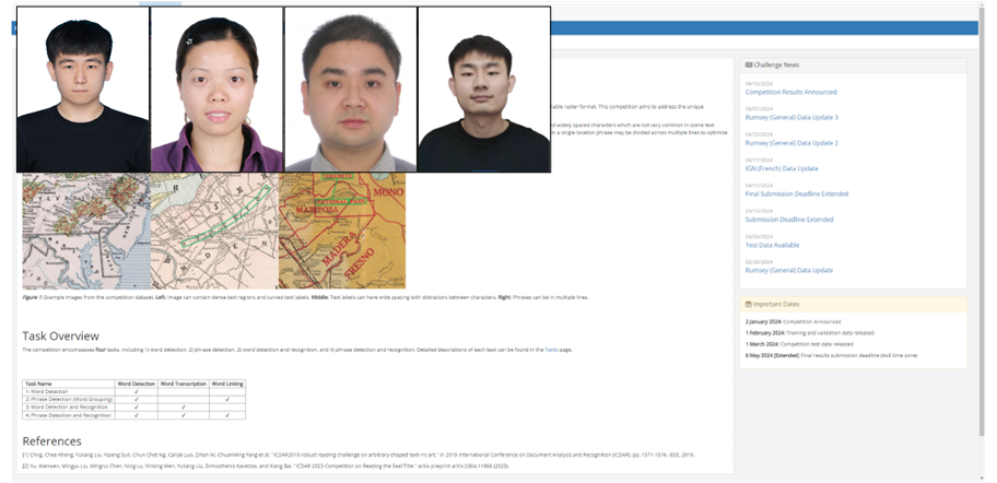 In the individual task at ICDAR 2024, we ranked third. The first place in this task was taken by: Bilibili; The second place was taken by: Tianjin University; The third place was taken by us. In another task, we ranked fifth. The official rankings for this task are: First place: Bilibili Second place: American Express Third place: Tianjin University Fourth place: American Express Fifth place: Ours